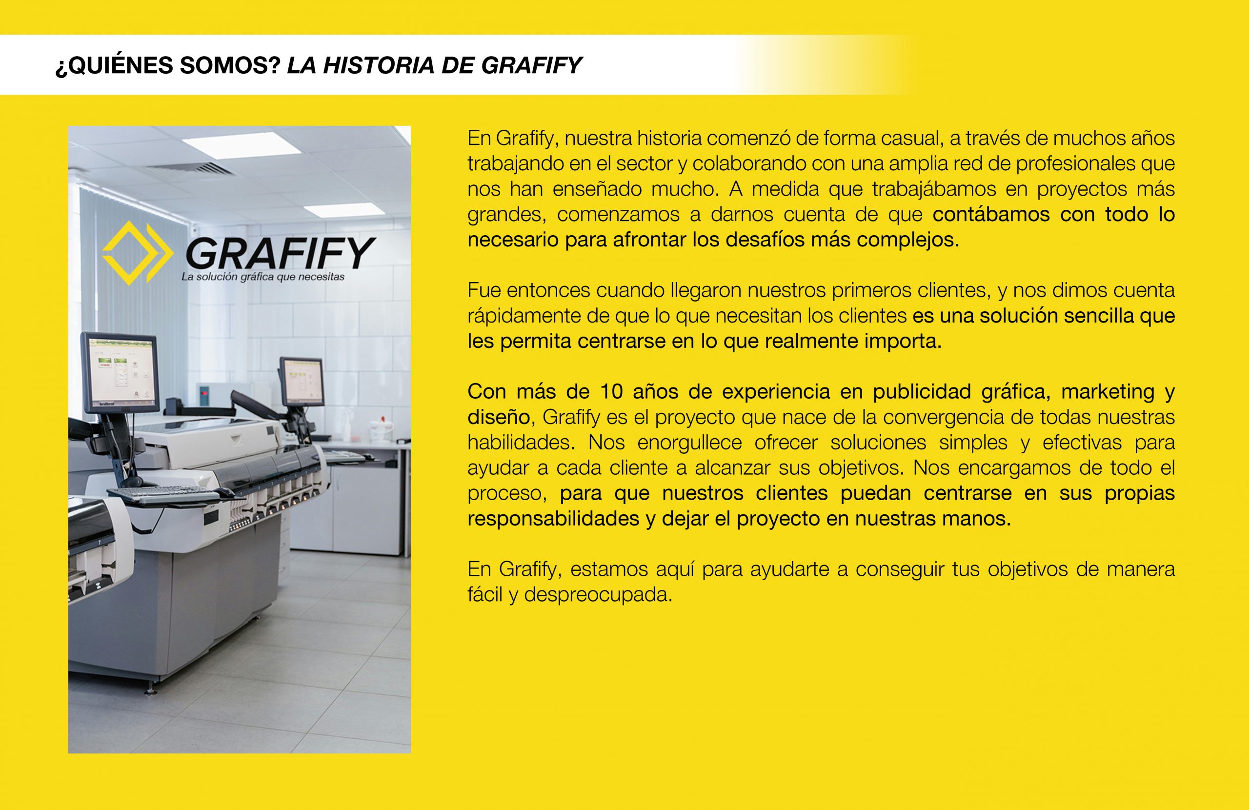 En Grafify el proceso empieza desde la idea. Con nosotros, podrás desarrollar tus proyectos y convertirlos en una realidad, desde su concepción hasta el marketing.